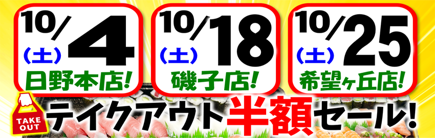 6月もどんどんやります、テイクアウトセール! 6/7(土)日野本店 6/21